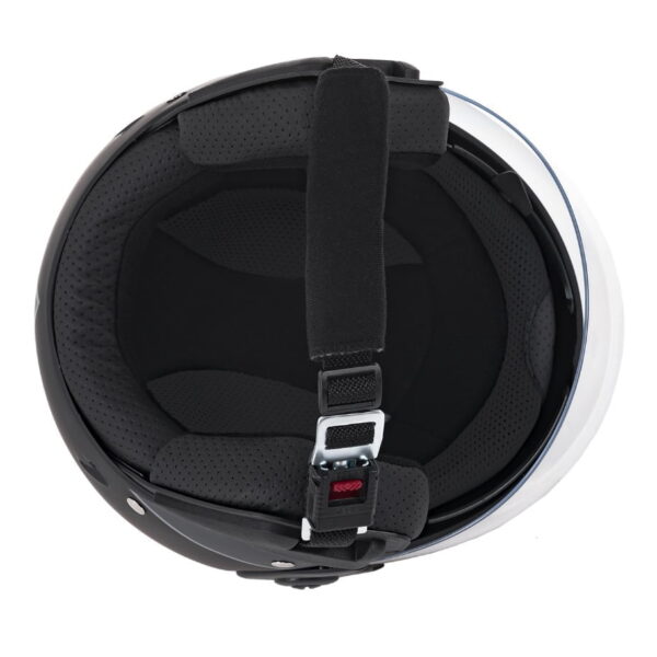Kask na skuter elektryczny jest dostępny w trzech wariantach kolorystycznych – biały czerwony i czarny.