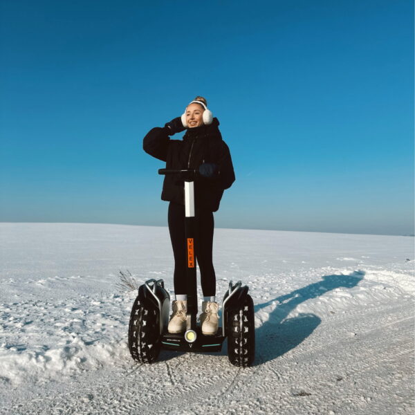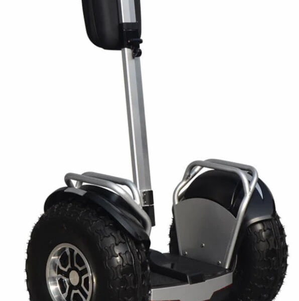 Prezentujemy nowy terenowy pojazd typu segway Velex Off-road Q1X. Jest to pojazd samopoziomujący którym sterujemy za pomocą własnego ciała. Urządzenie posiada żyroskopy, dzięki którym jest w stanie wykryć położenie środka ciężkości. Następnie komputer sterujący przetwarza te informacje i przesyła informację do silników, które wykorzystując energię z akumulatorów obracają się z zadaną przez sterownik prędkością.